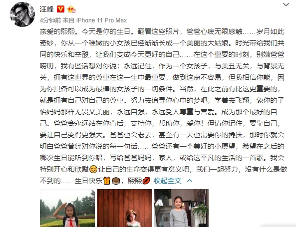 近来,汪峰和章子怡纷繁在个人的社会化媒体上发布了祝愿14岁女儿小苹果生日快乐的长文,感叹一家人的美好,还送上对女儿的祝愿与期盼,引来了许多网友的仰慕!