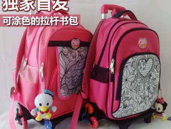 color me mine 新款彩绘儿童拉杆书包三轮爬楼梯手拉式书包可拆卸