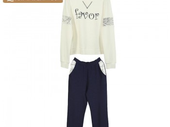 秋冬新款长袖纯棉男士睡衣 字母印花简欧套装可外穿情侣款 批发