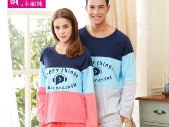卡丽纯 情侣睡衣 秋季长袖两件套男女套装 圆领韩版拼色家居服