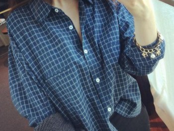 比较复古的格子图案,简单又不失风格,宽松BF风,棉麻面料,衣长略偏短,很适合做打底搭配秋冬毛衣,经典百搭的翻领,搭配套头毛衣,随意露出领子,轻而易举的化解了秋冬毛衣的沉重质感~
