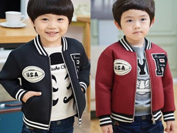 【品名】男女童儿童纯棉抓绒拉链字母棒球服