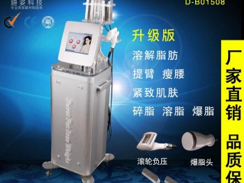 rr 利用40KHZ聚集强声波头发射出的强烈声波,极速振动脂肪细胞,在脂肪细胞内外产生无数真空气穴,强力撞击脂肪细胞,令脂肪细胞膜产生内向爆破,使甘油三脂分解成甘油和游离脂肪酸;再由1MHZ射频波,使分解的甘油和游离脂肪酸通过肝肠循环排出体外;最后由动力红光及能量电极定位爆脂收紧,从而达到减肥美体的效果。1MHZ超声波头可以配合产品使用,如减肥凝胶、减肥膏霜、精油、精华素的。促进产品吸收,提高减肥塑形效果。r r V8体雕仪 双极RF射频溶脂仪价格 负压吸脂移脂纤体减肥仪器厂家直销r