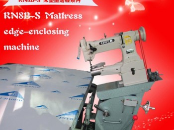本机主要用于席梦思床垫的缝制,完成床垫面料与墙布之间的边缘包缝工作,也适用于其它床褥、毛毯、沙发软垫、睡袋的缝制。机头可自动升降,以适应缝制各种高度的床垫。行走箱与机头驱动采用离合电机,转角减速方便易控,机头采用滑杆挑线,立式旋梭勾线,构成双线锁式线迹。上下轴用同步齿形带传动;杠杆式针式针距调节机构。采用综合下送料、针送料和交替压脚上送料,以及高压脚行程,高压脚提升间隙和较大线迹长度,配合推拉式不锈钢专业围边夹具;可轻易处理难于传送的物料和多层厚重皮革。并安装离合器式安全装置;以防负荷引起的机器损伤,使缝纫操作更加平稳方便。推板高度可调,人机性能更加合理。