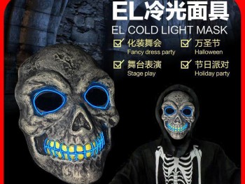 发光面具定做化妆派对el冷光面具厂家死神恐怖骷髅发光面具批发